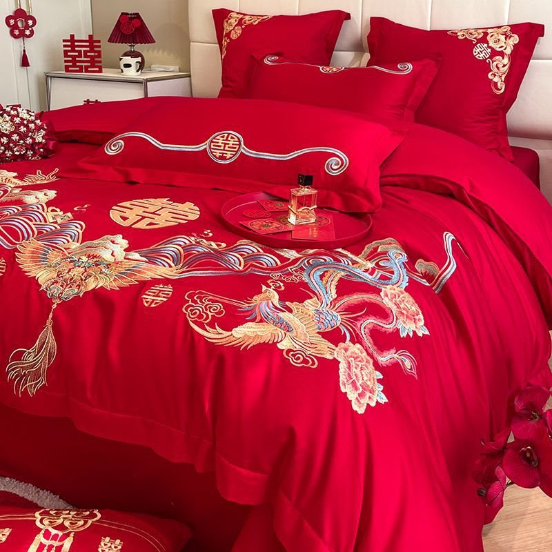 結婚祝いの四点セット中国式龍鳳結婚の赤いシーツの布団カバーはベッド用品の国境を越えて卸売りされます。