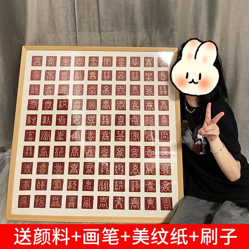 百喜額縁48宮格フォトフレームdiy手書き絵画喜字記念枠新婚プレゼント100格子枠