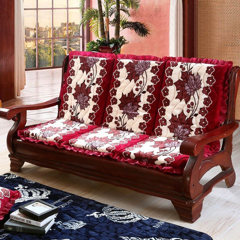 冷たい椅子の座布団は背もたれの古いタイプの木のソファーを持っています。