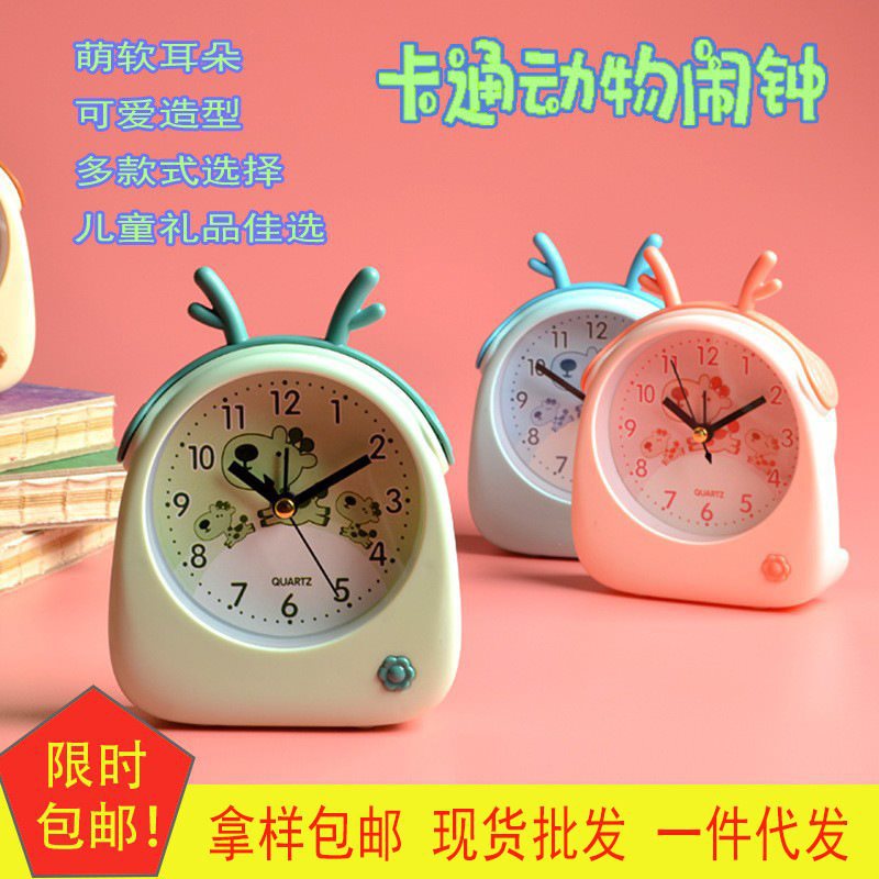 アニメ動物目覚まし時計かわいい個性鹿角デスクトップ児童学生ベッド目覚まし時計キャンディー色装飾台時計