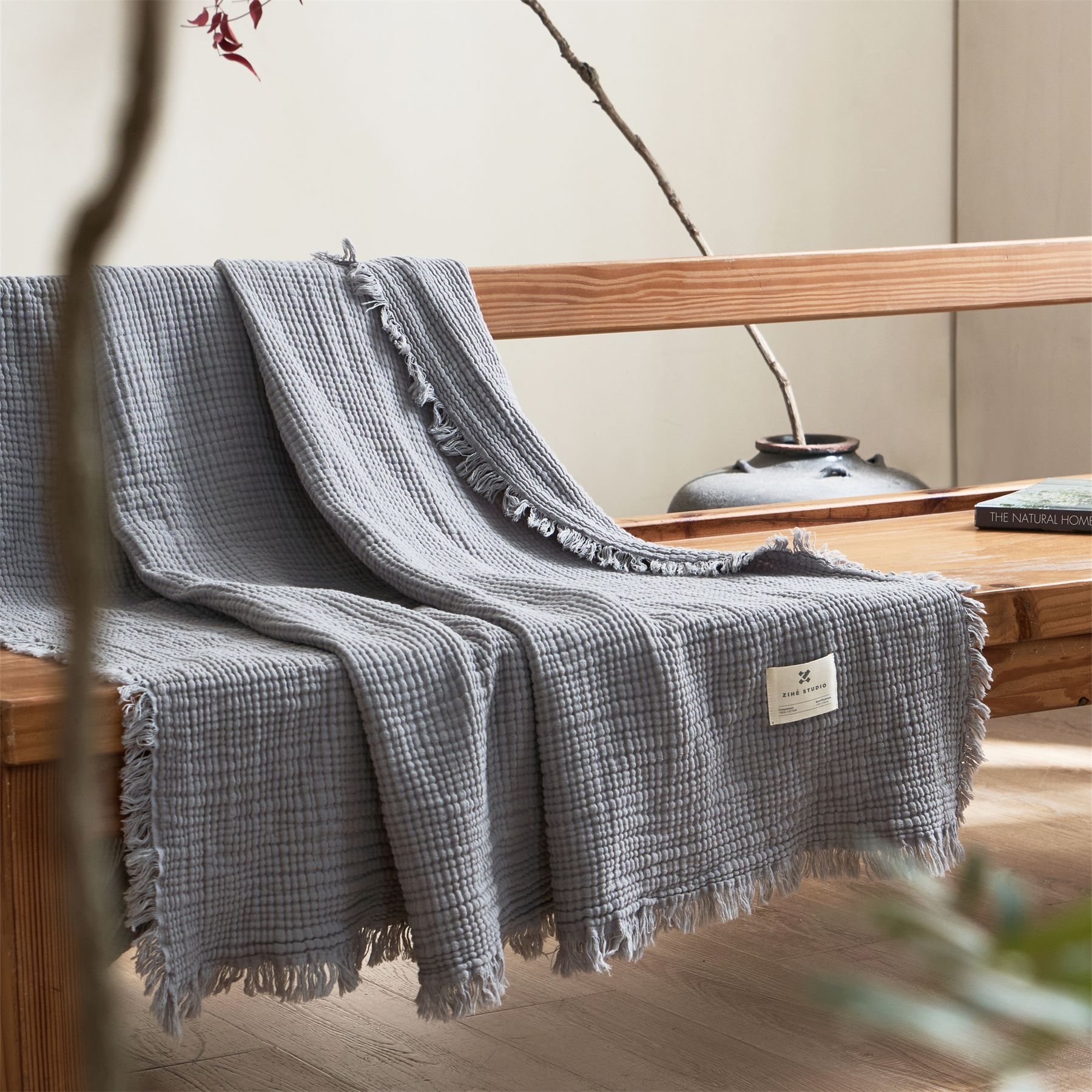 綿四層の糸のしわの復古色のガーゼのカバーの絨毯の柔らかい通気性の色の紡績のタックのフリンジの無地の車の絨毯