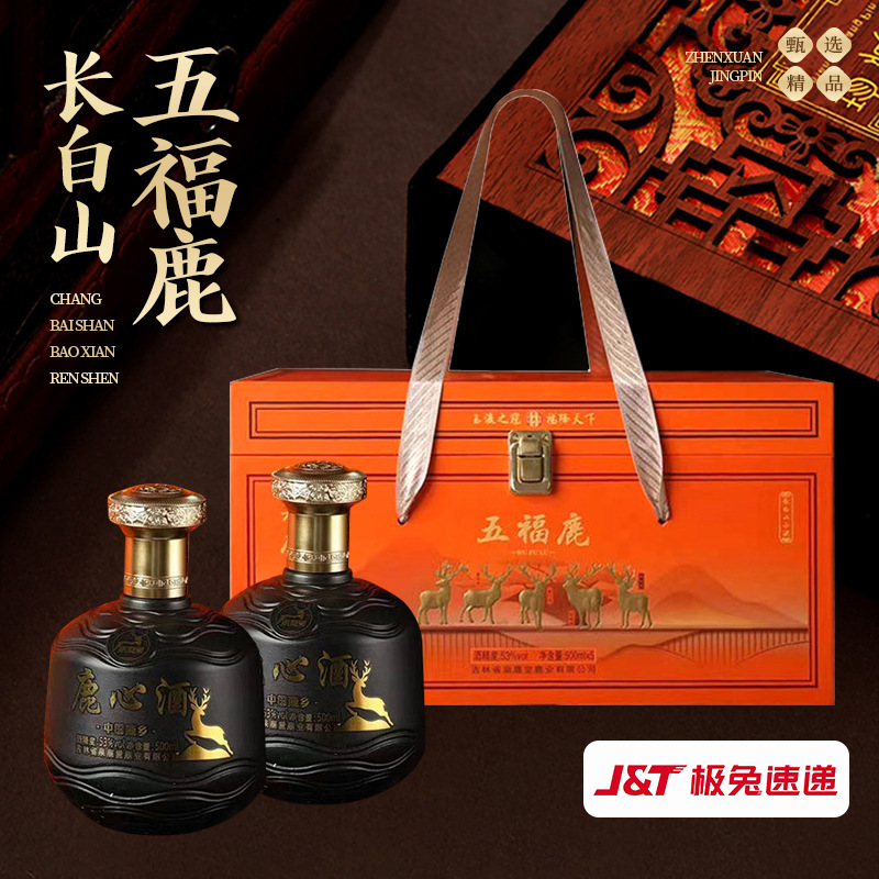 順豊包郵便五福鹿酒53度500ml 5ギフトボックス吉林鹿郷特産鹿心酒鹿製品