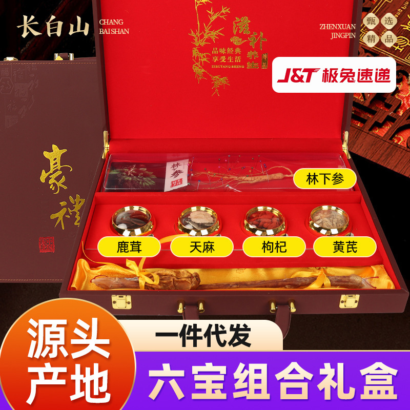 東北の特産品六宝ギフトボックス林下参鹿茸天麻クコ黄スライスお祭りプレゼント人参ギフトボックス