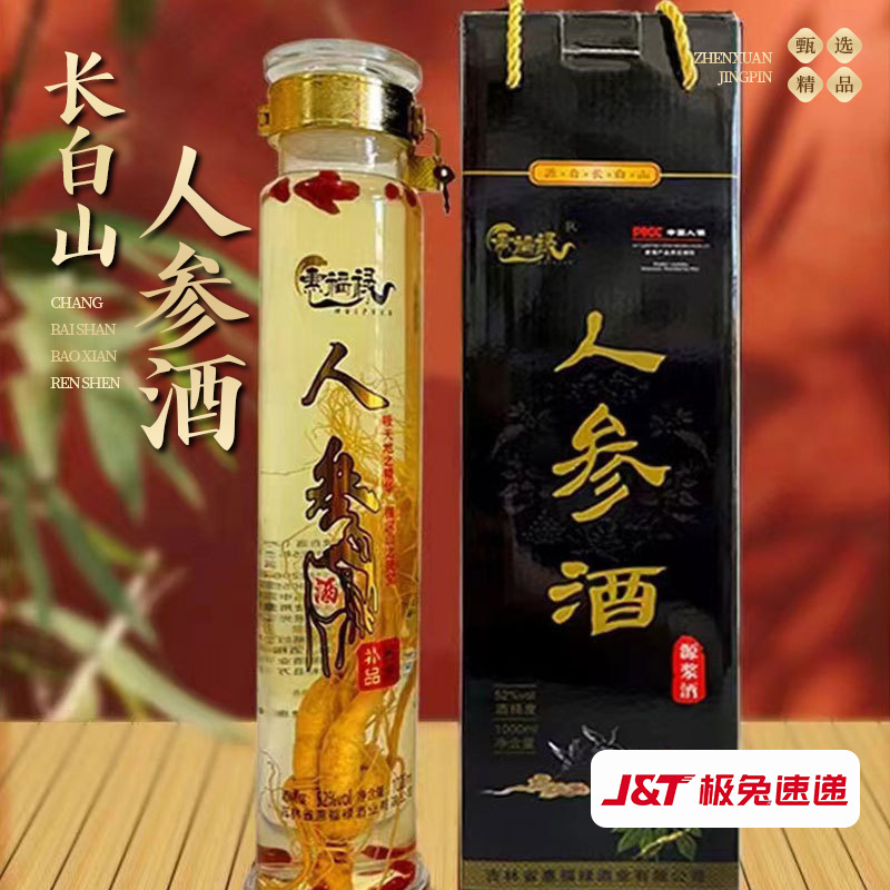 長白山新鮮人参酒1000ml 52度純食糧酒東北新鮮参クコ白酒箱卸売りギフトボックス