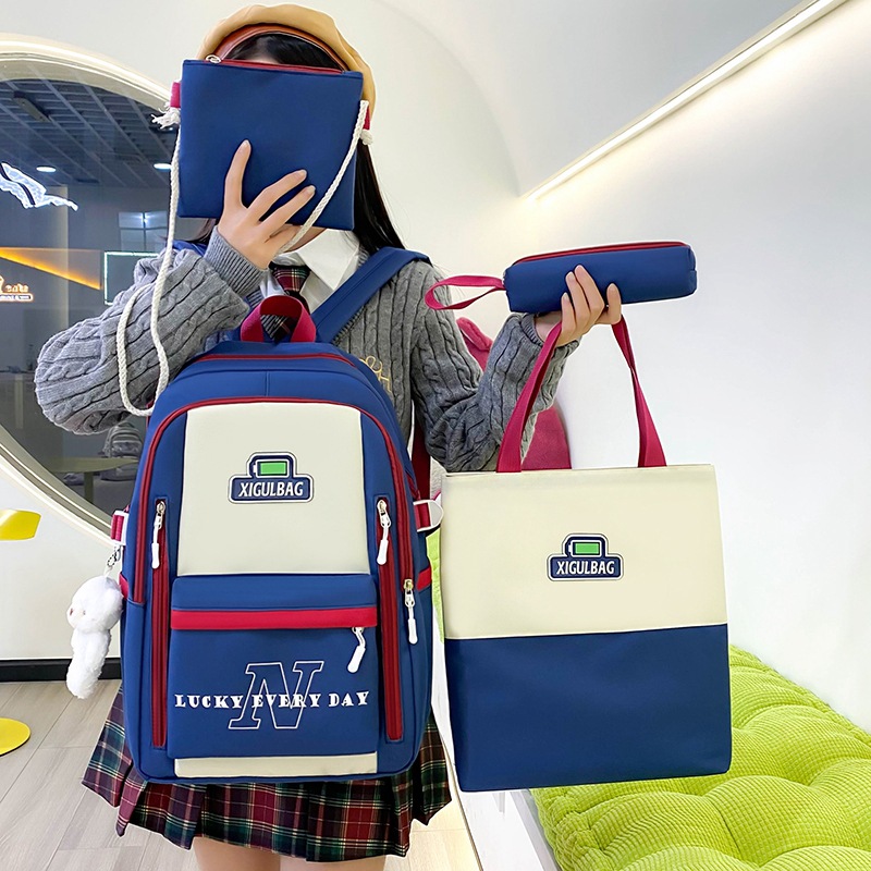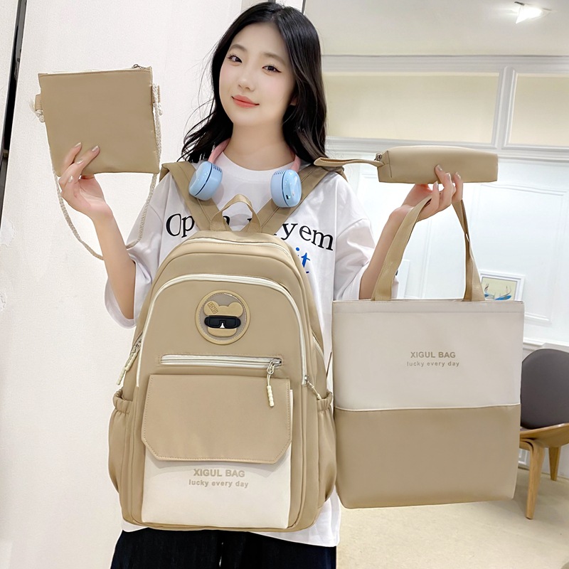 クロスボーダー卸売中学生四点セットカバン新作ファッションカジュアルリュックサックシンプル通勤補習手提げ袋