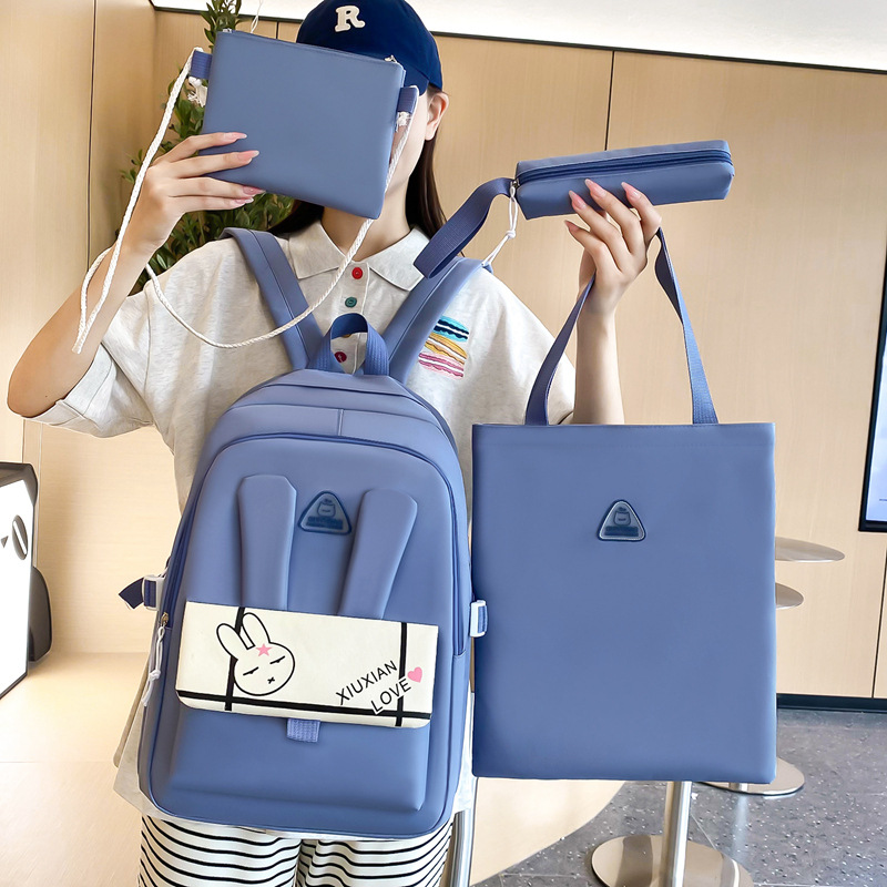 国境を越えたアニメプリントウサギの耳の多点セットのかばんが軽くてかわいいキャンパス風中学生の4点セットのランドセル