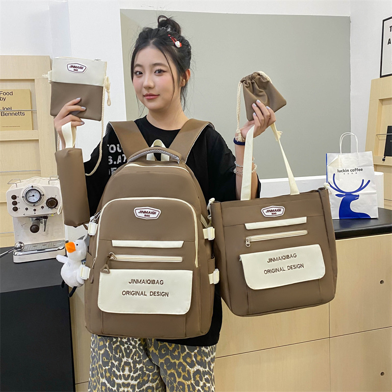韓国のシンプルなカジュアルなリュックサック2024の新しいファッションは5つのセットのカバンの初高校の学生の補習の袋を合わせます。