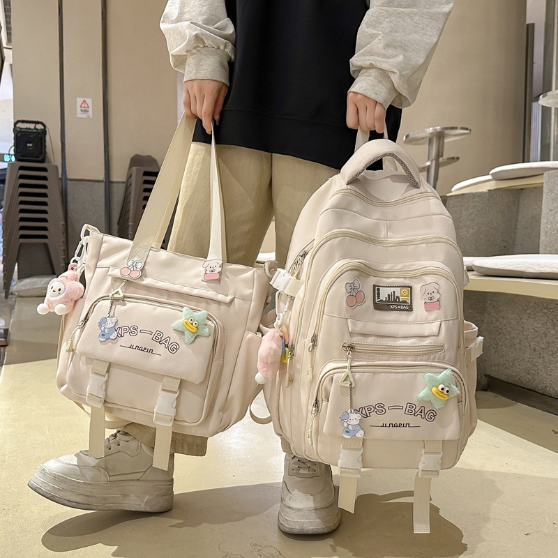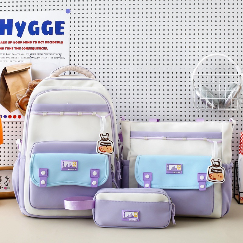 Ins学院風小中学生カバン韓国版可愛い軽やか少女リュックサック三点セット手提げ補習バッグ