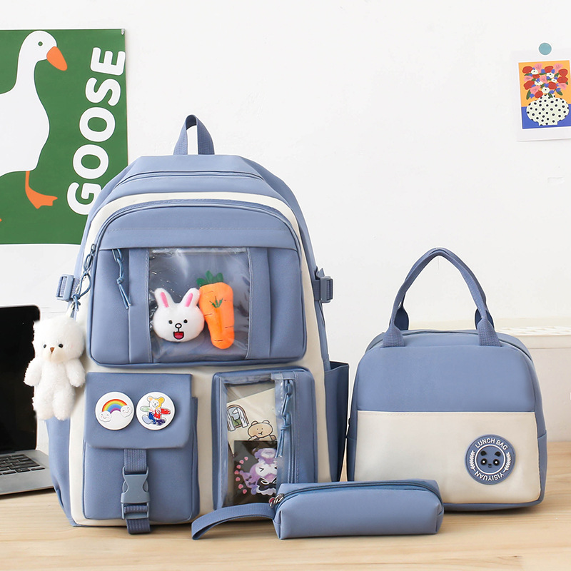 クロスボーダー可愛いプリント三点セットカバン小清新ins韓国版学生弁当箱大容量キャンパスリュックサック