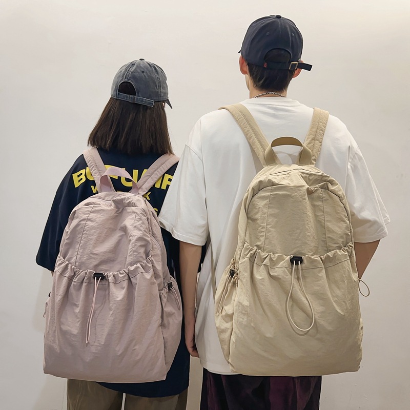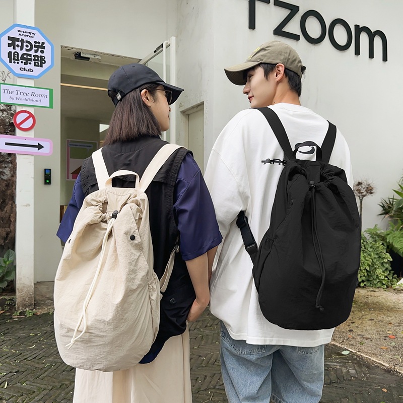 折りたたみ式新型軽量リュックサック大容量日本純色手提げショルダーバッグアウトドアスポーツ紐引きカップルバッグ