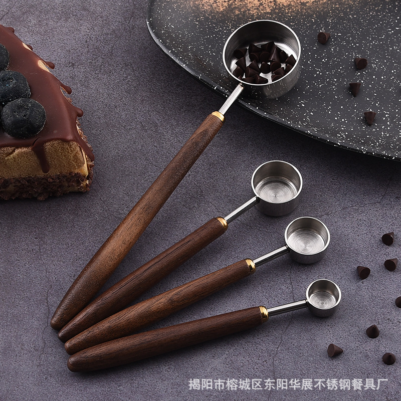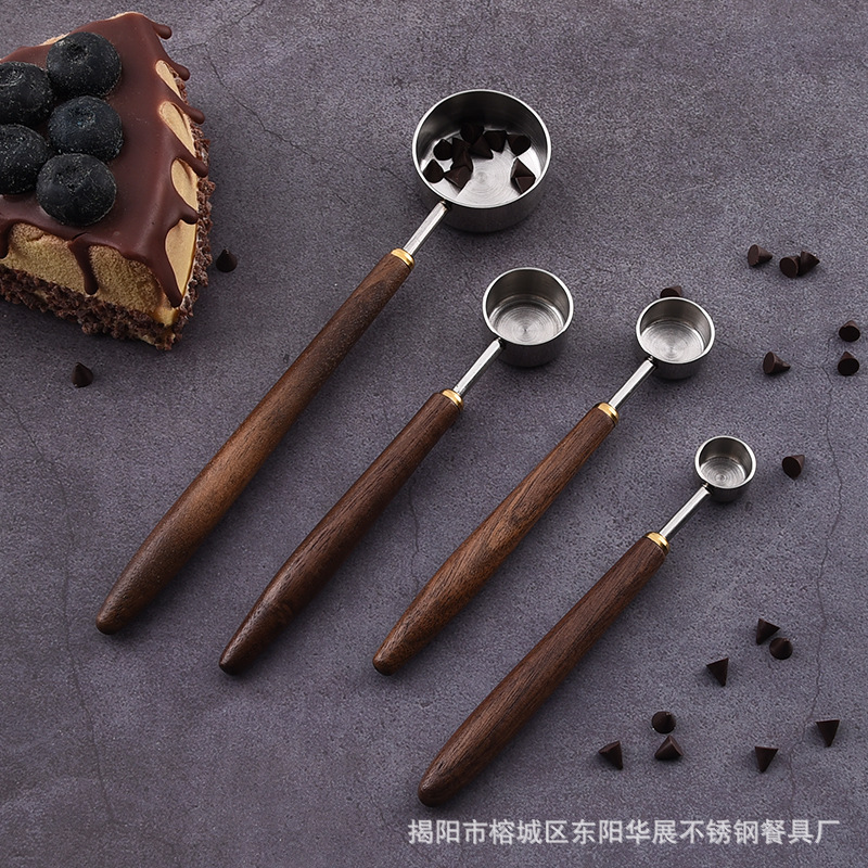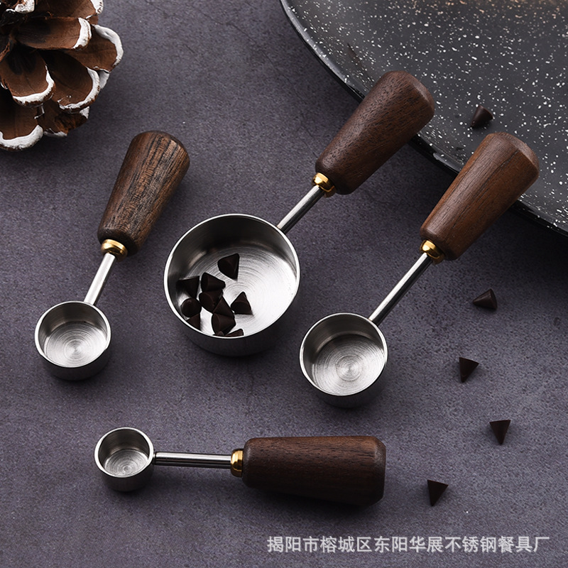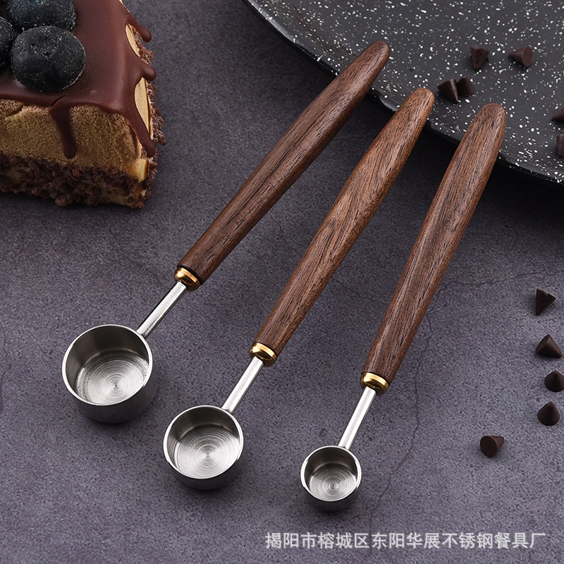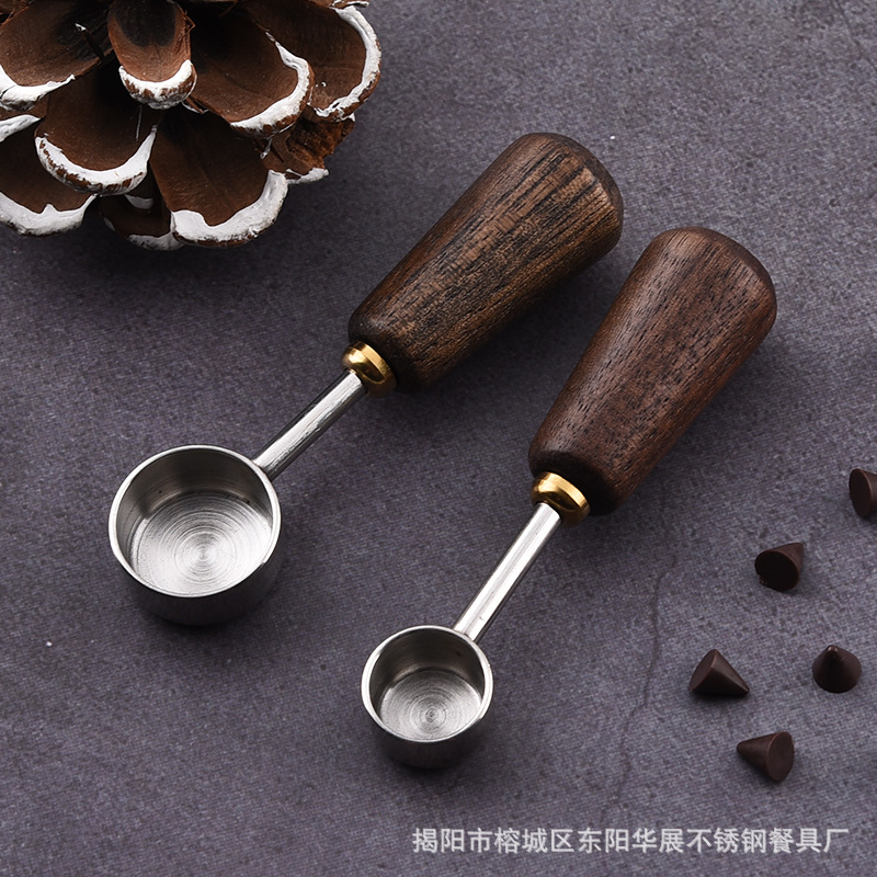 クロスボーダー新ウォールナットテーパー 304 ステンレス鋼平底粉ミルク重量計量スプーンコーヒー粉計量スプーン 5 ミリリットル