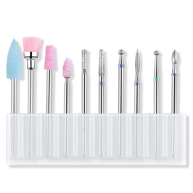ネイルアートセットダイヤモンド10本研磨ヘッド石英研磨機部品研削針死皮除去ツール