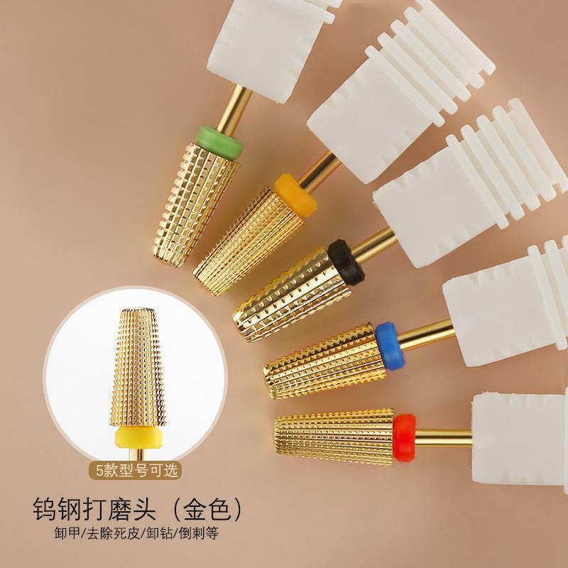 ネイルアート五合一タングステン鋼の金色の研磨ヘッドは、マニキュアの研磨機の研磨ヘッドの共通の5合1平頭テーパーを外します