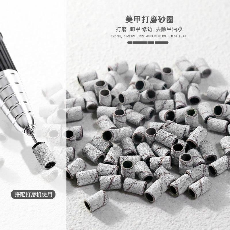 100pcsネイルアート研磨ヘッドの砂輪研磨機の白い模様のネイルアートの砂輪に100個のサンドペーパーの輪を入れて落とします。