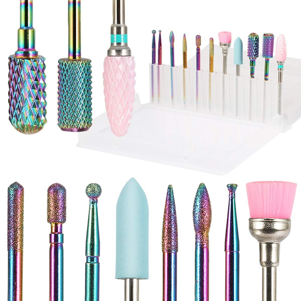 ネイルタングステン鋼研磨ヘッド10点セットのカラフルな合金セットの装甲面研磨死んだ皮取りツールのネイルマシンの部品
