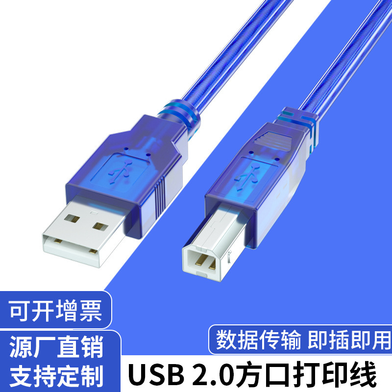 Usbプリントケーブル2.0透明ブルーコンピュータプリンタケーブルusbケーブル全銅帯磁気リングシールド