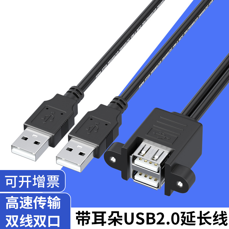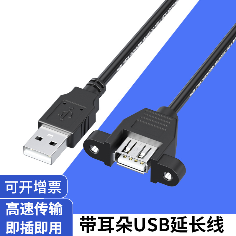 メーカー直供usb延長線耳付きネジ穴固定可能パネルusb公対母延長線耳付き