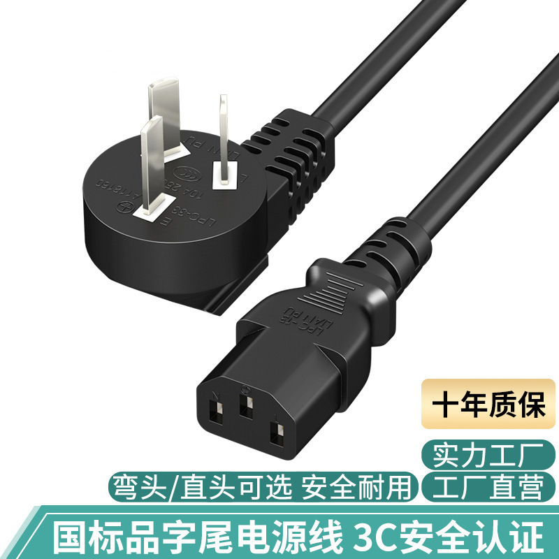 3c認証国標品字尾三穴エルボ電源コードデスクトップパソコン炊飯器ケーブル