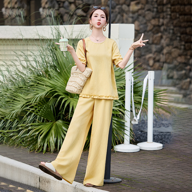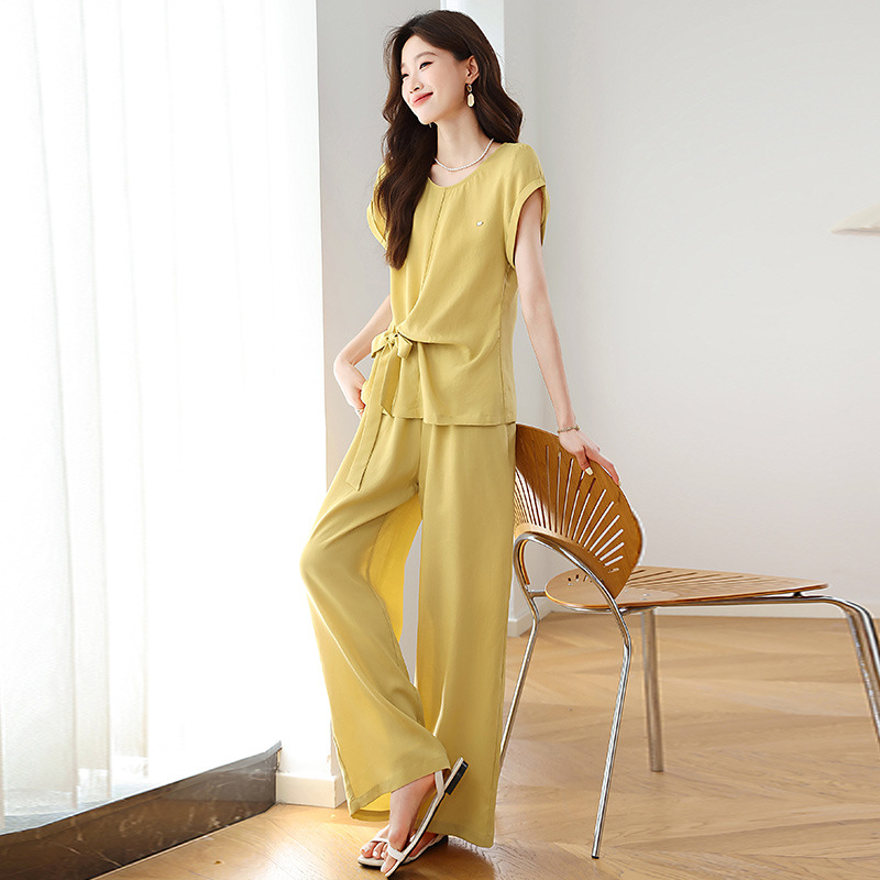 ファッションカジュアルスーツ 2025 夏の新デザイン快適なトップスルーズワイドレッグパンツ 2 点セット HG3272