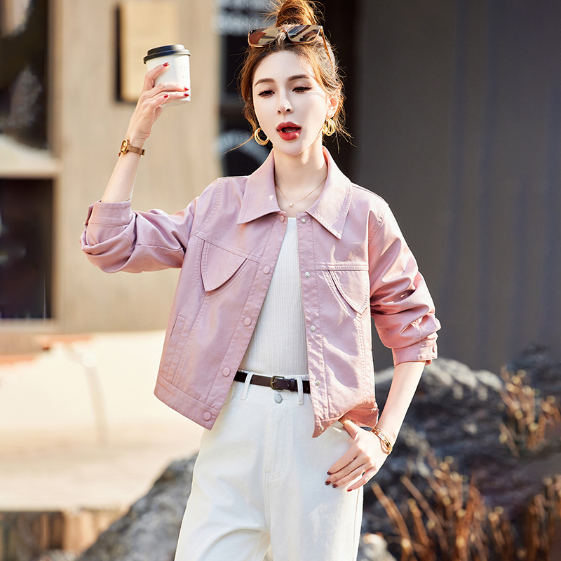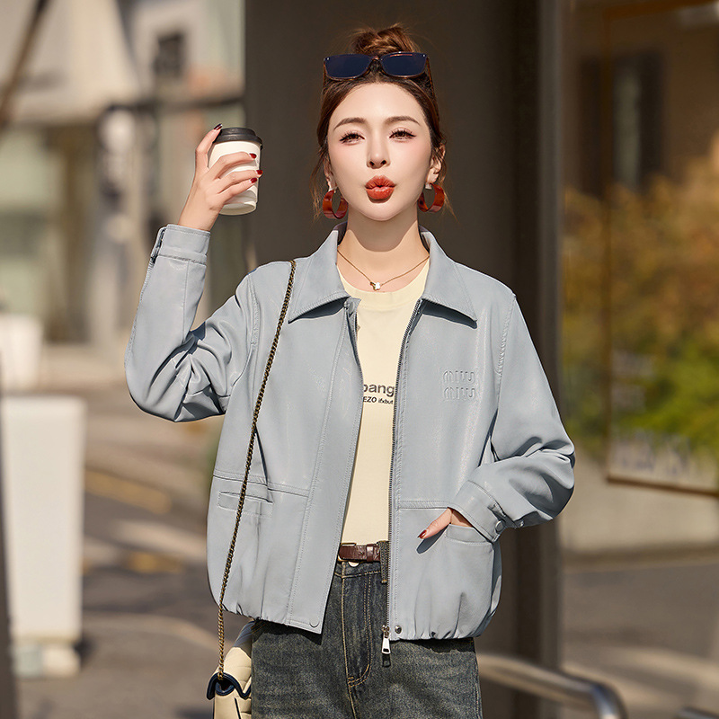 2025春秋新型ファッションカジュアルジャケットのゆったりとした小柄な女性用革服HJ2507
