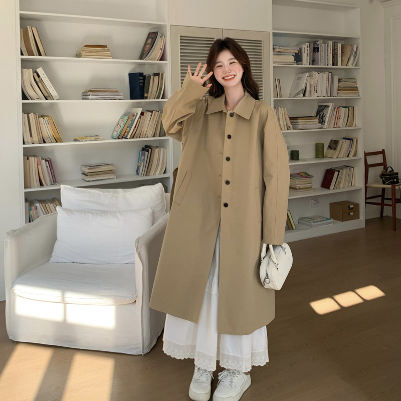2025春秋新型女装気質通勤風高級感カーキ色のロングタイプの襟付きコートn 6168
