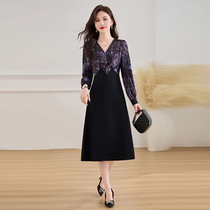 2025春の新型vネック長袖ウエスト気質中ロングスカート