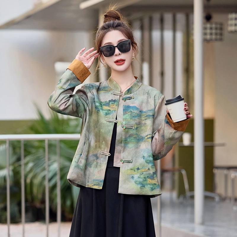 2025春の新型気質洋風百合新中国式国風盤ボタン立襟ファッションコートn 6183