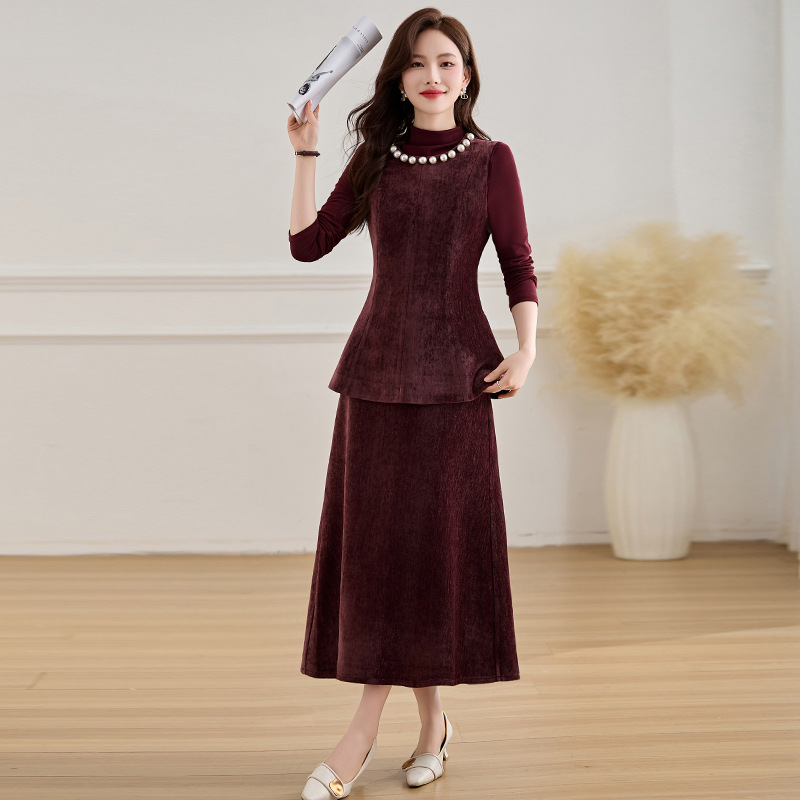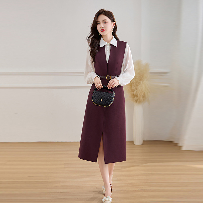 2025年春秋新作ファッション気質長袖シャツベストスカート2点セットファッションワンピースZ5381