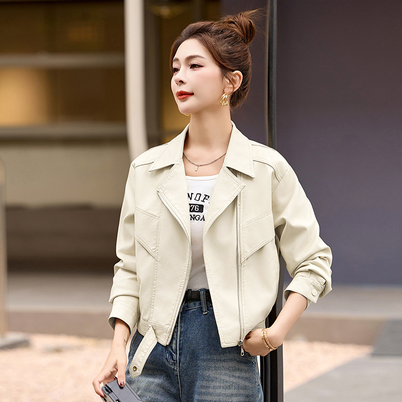 女性の皮の服の女性の2025春と秋の新型の気質の百合の機関車の服のpu皮のジャケットのXG9963