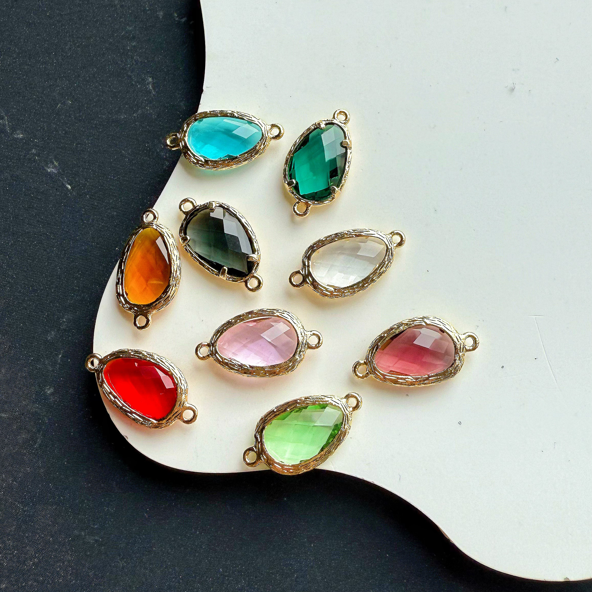薄い金色の保色モザイク水晶ガラスダブル吊14*25mm切断面バロックペンダントdiyアクセサリー部品