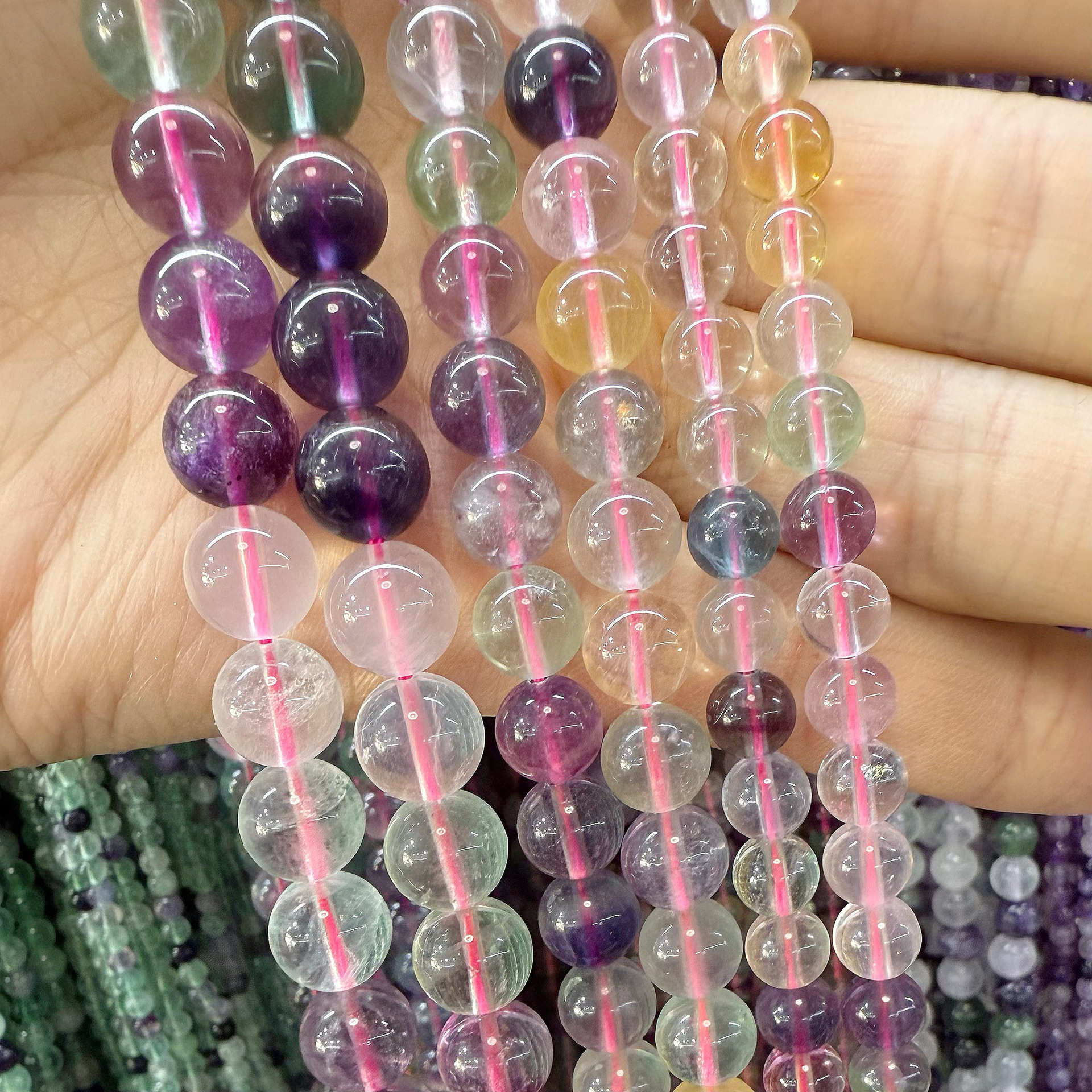 DIY氷種彩蛍石散珠天然黄蛍石紫蛍石円珠半製品DIYビーズアクセサリー部品