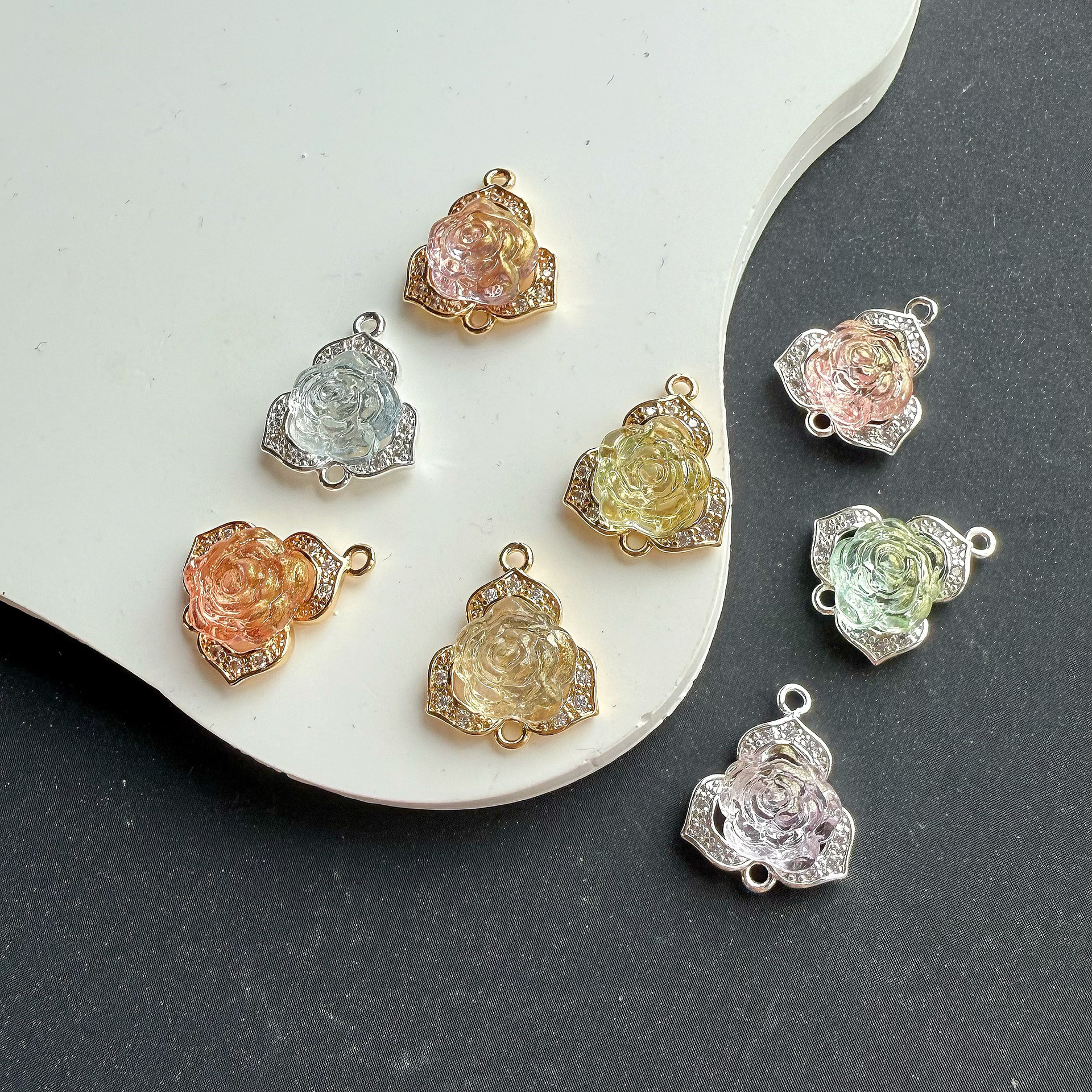 DIY15 × 18mmバラの花の保色ジルコンの双吊アクセサリーの部品の手作りのDIYのネックレスのブレスレットのビーズ