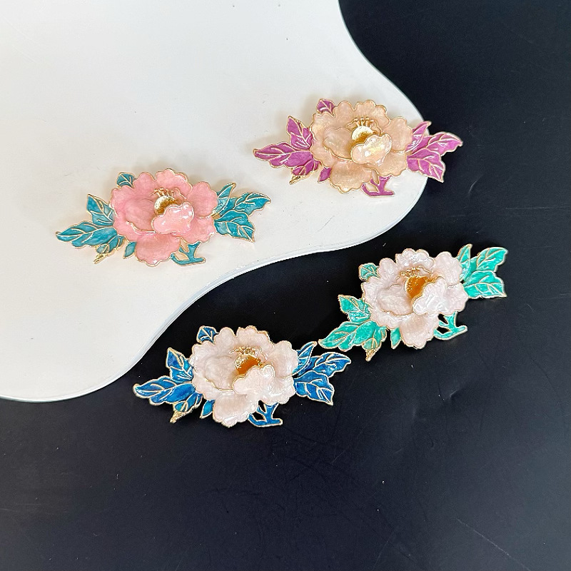 合金の油は点翠の手作りのDIYの古風をまねて青い牡丹の花の髪飾りの漢服の部品の材料を焼きます。