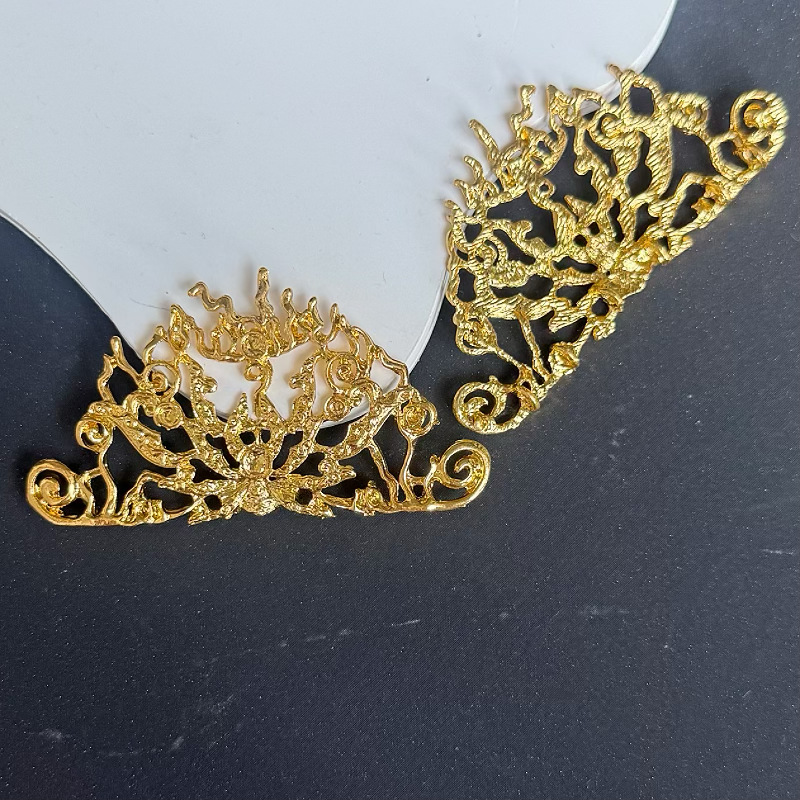国潮中国式透かし彫りの花糸蝶の装飾の部品の木目の優雅な金色の銀色の新婦の頭はかんざしの材料を飾ります。