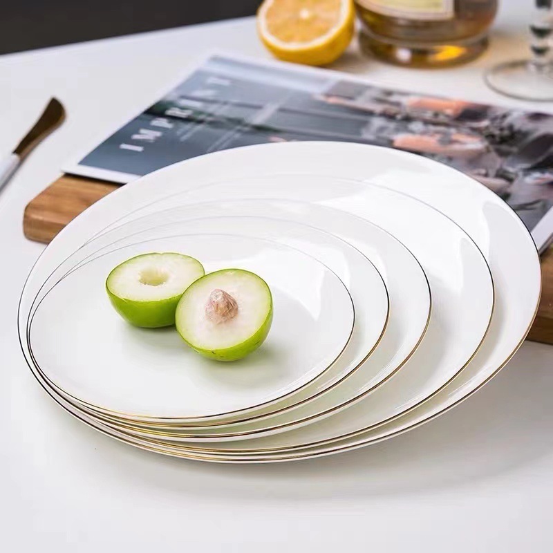 描金陶磁器皿家庭用食器セット創意ステーキ皿プレゼント月光金辺骨磁器皿ホテル皿