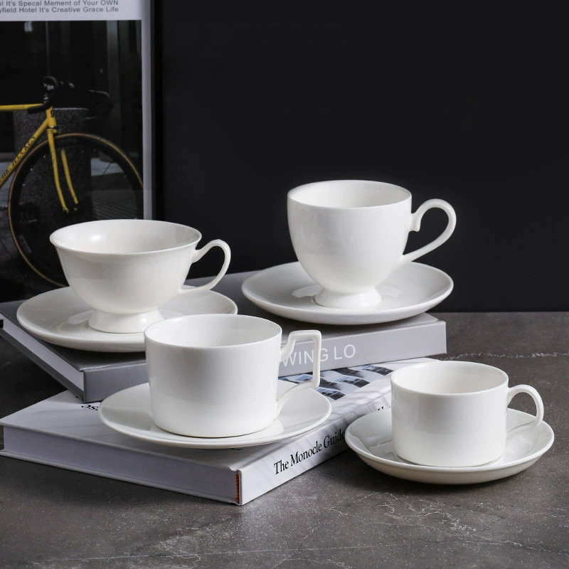 国境を越えた骨磁器純白コーヒーカップ皿カフェ陶磁器カップ家庭用シンプルなオフィスコーヒーカップ印刷ロゴ