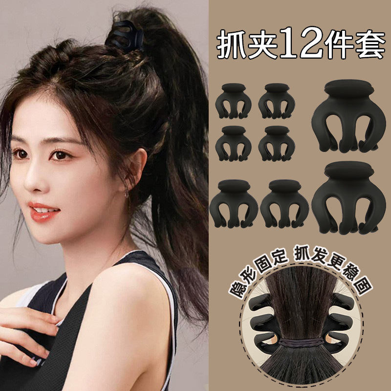 大きいサイズの高さの馬尾は黒色の明るい面のかぼちゃのヘアピンを挟んで神器のヘアピンの女性の後頭部のサメを挟みます。