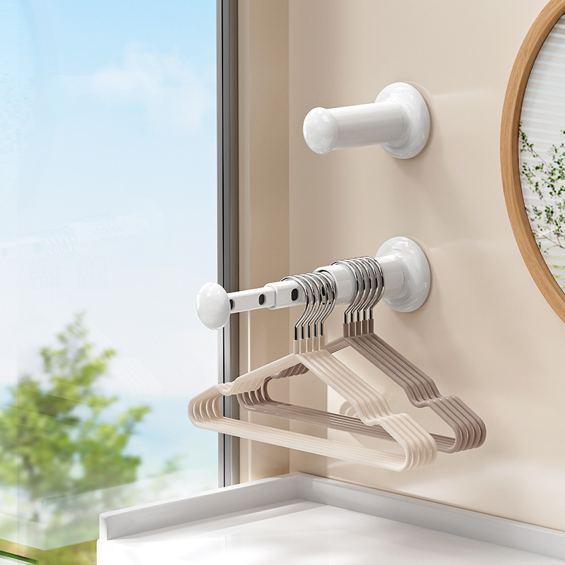 多機能折りたたみ衣類ラック吊りロッドバルコニーホームワードローブ収納ラックは、パンチングなしで収縮吸盤衣類ラック収納を可能にします