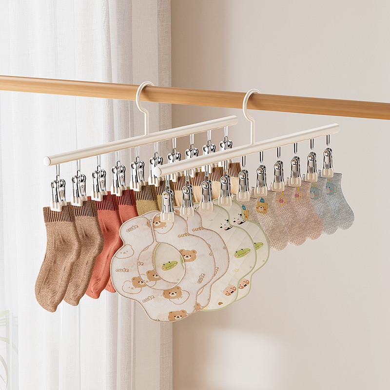 ステンレス多クリップ靴下干し棚家庭用ベランダ防風無痕下着ハンガー干し靴下神器