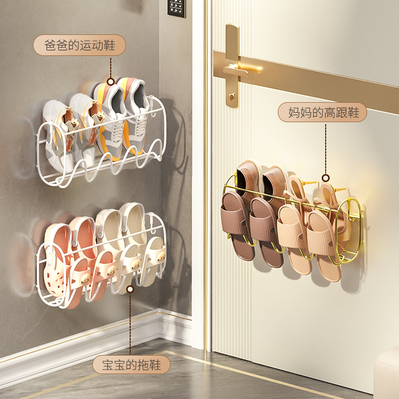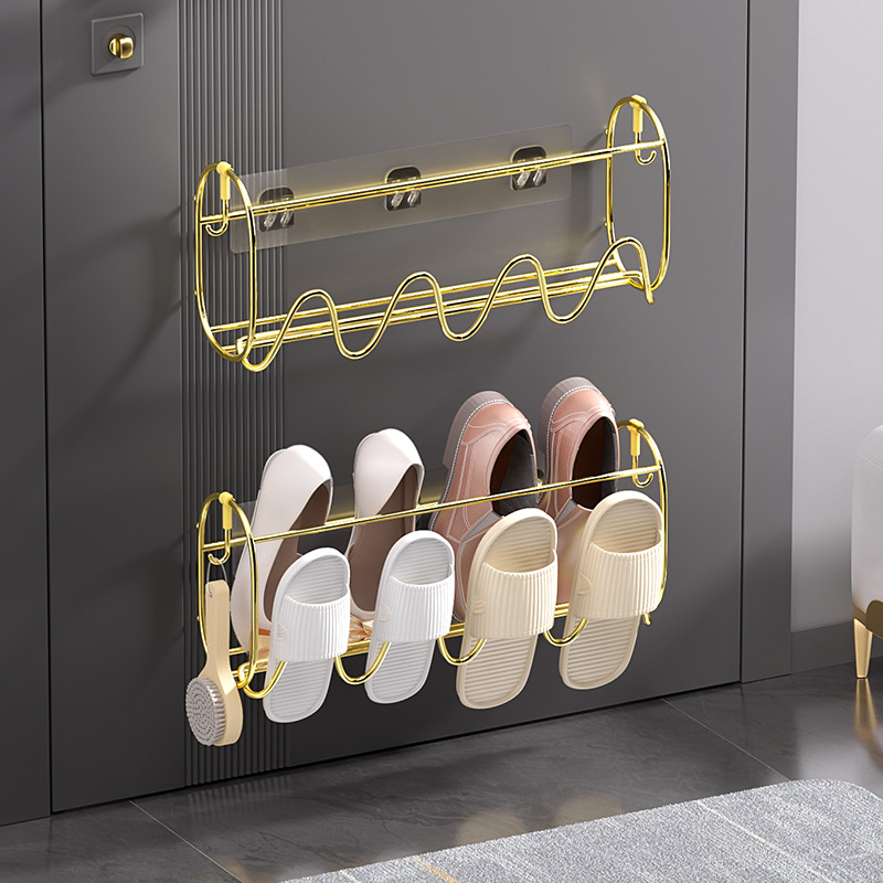 浴室の靴棚の穴を開けないトイレのドアの後ろのスリッパの収納棚の壁掛け式の水切りスリッパのハンガーの卸売り