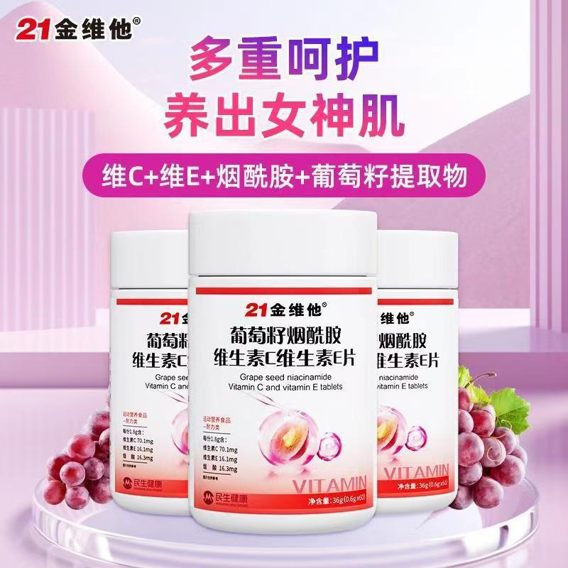 21金維他ブドウ種ニコチン酸アミドビタミンcビタミンe錠60粒女性多種VCBニコチン酸アミド