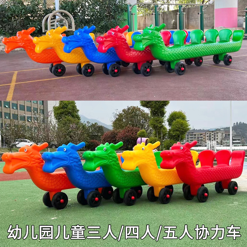 幼稚園の協力車の子供の複数人の滑車チームの動物の滑車のプラスチックの4人の滑車の竜舟のレース