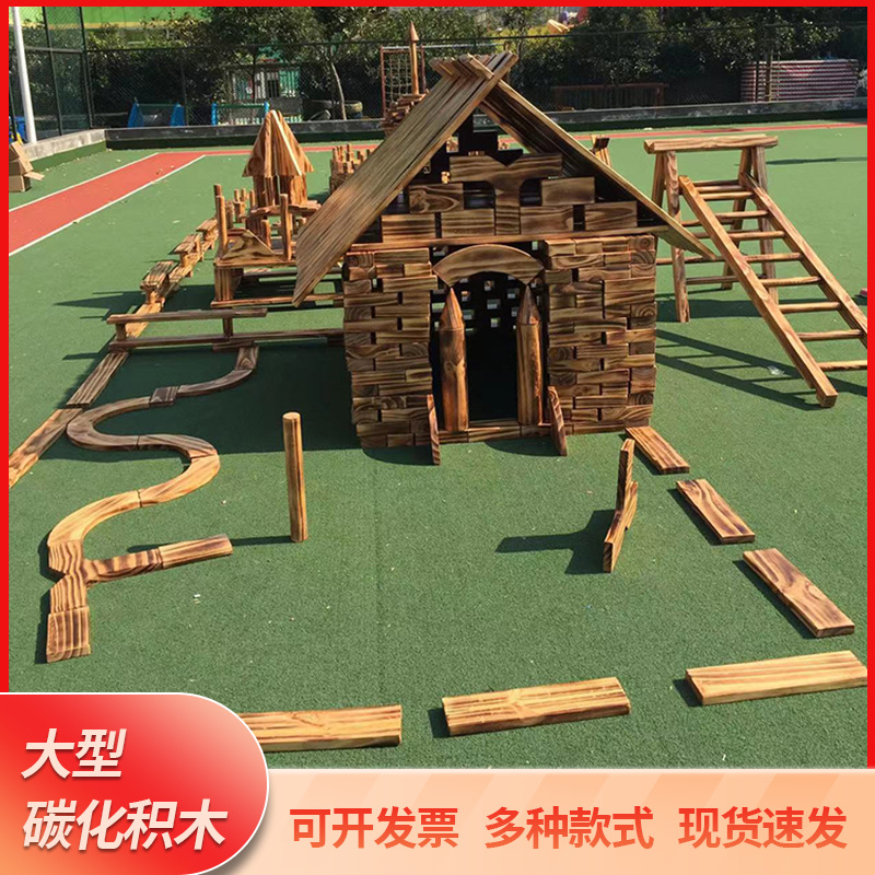 幼稚園の超大型屋外炭化大積木原木炭焼児童建築区の材料は実木玩具を作る