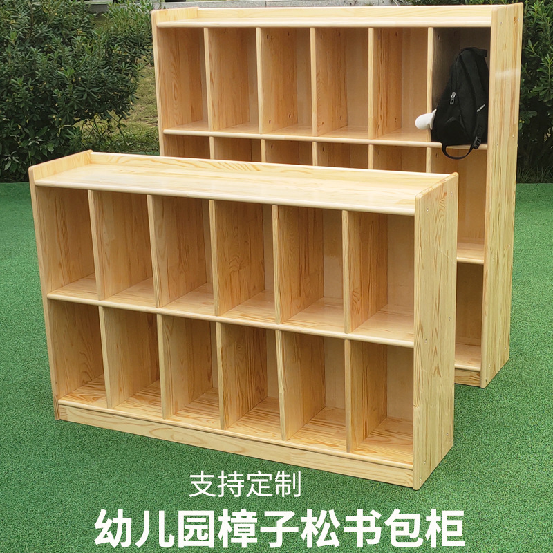 幼稚園の多機能木の本のカバンの箱の子供のおもちゃの樟子松は扉の服の帽子を持って教室の棚を収納します。