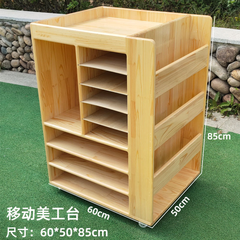 幼稚園実木移動美工台美術室画紙収納棚原木児童画室整理棚美工棚