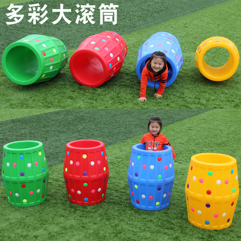 幼稚園の大きいローラーの感覚は器材の子供の色の桶の大きいローラーのプラスチックのドリルの大型の遊戯のおもちゃを訓練します。