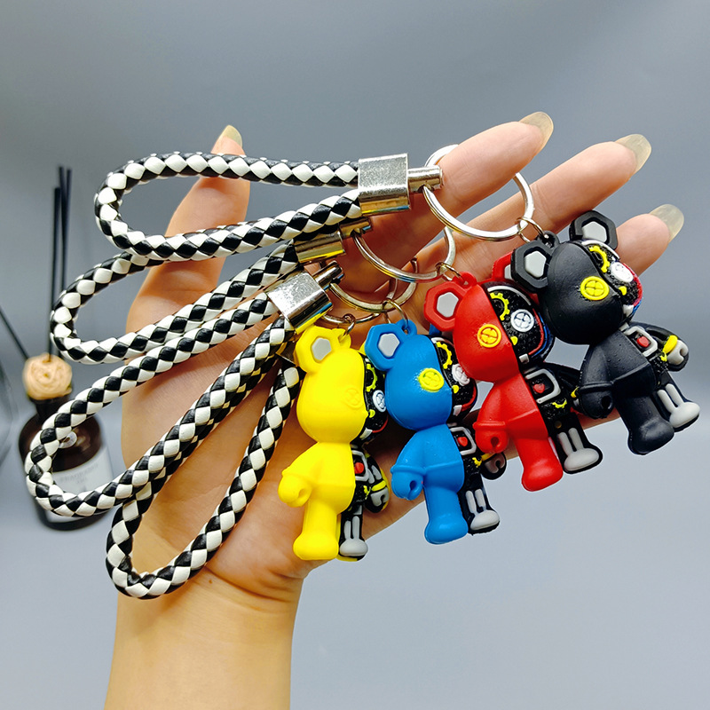 クリエイティブギフト機械ベアーキーホルダーカップル自動車キーチェーンバッグストラップ潮クール暴力熊小ペンダント