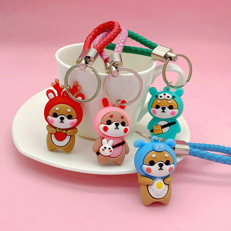 新商品の編みひも犬の柴犬のキーホルダーが可愛いシリカゲルのぬいぐるみが自動車のキーホルダーを持っています。
