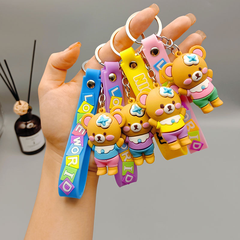 新しいアニメの熊のペンダント3d立体ミルクティーの熊の人形のキーホルダーの創意活動は小さい贈り物の卸売りを贈呈します。