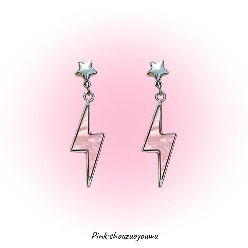 オリジナルデザインのシンプルな気質イン原宿ピンクライトニングかわいい女の子925シルバー針耳クリップパーソナライズされたイヤリング